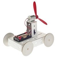 Aus Karton und Klebstoff entsteht in Windeseile das Gerüst des Lüftermobils. Anschließend müssen die Räder ordentlich befestigt werden und schließlich noch der Propeller mit den Batterien verbunden werden. Nach dem erfolgreichen Testlauf kann das Lüftermobil noch bunt mit Acrylfarben bemalt werden.