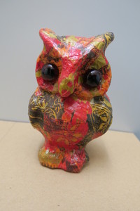 Eulen sind ja eigentlich als nachtaktive Tiere bekannt, doch seit einiger Zeit sieht man sie immer häufiger auch am Tag. Das ist kein Naturphänomen, sondern schlicht und einfach der Beweis dafür, dass Eulen absolut im Trend sind. Ob auf T-Shirts, als Schmuckanhänger oder als Wohnaccessoires - überall schaut einem das niedliche Tier mit seinen großen Augen entgegen. Daher möchten wir euch zeigen, wie ihr diese schöne Eule aus Pappmaché mit Decopatch-Papier gestalten könnt.