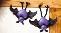 Fledermaus-Alarm an der Zimmerdecke! Aber keine Sorge, die kleinen lila Vampire sind aus Styropor, Filz und Chenilledraht gebastelt - und wirklich ganz harmlos. Schmückt die Wohnung zu Halloween doch einmal mit diesen fliegenden Blutsaugern. Wir zeigen Schritt für Schritt, wie ihr Fledermäuse selbst basteln könnt. Keine Angst, diese "Vampiere" sind harmlos!