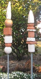 Gartenkeramik liegt voll im Trend. Wer wirklich etwas Besonderes für seinen Garten machen möchte, der macht sich seine eigene Stele. So geht's: Aus rotem, weißem oder schwarzem Ton fertigen wir Kugeln, Platten, Scheiben, Würfel usw. Nach dem Brennen reihen wir sie auf einen Metallstab, der in die Erde gesteckt wird. Die dekorative Stele kann am Mo. 25.9. abgeholt werden, Zeiten siehe "Abholschein".