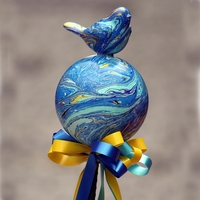 Ist es ein Wunder, dass sich auf deiner Gartenkugel ein Vögelchen niedergelassen hat? Wohl kaum, denn Schönheit hat sich gesucht und gefunden. Beide strahlen durch die Marmoriertechnik in herrlichster Farbenpracht. Natürlich bekommen sie auch noch passende Dekobänder. Alle Marmorier-Kurse finden im Pavillon im Hof statt. Für den Aufenthalt im Freien entsprechende Kleidung mitbringen!