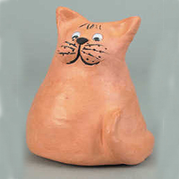 Anforderung: roten Ton formen und modellieren. Nach dem Brennen können die Katzen am Mo. 25.9. abgeholt werden, Zeiten siehe "Abholschein".