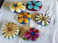Was wäre eine Steinsammlung ohne ein paar ganz ausgefallene und wertvolle Stücke? Mit Pinsel, Farbe und viel Fantasie entstehen im Nu "Steinblumen", "Fantasieblumen" und andere Schmucksteine. Die perfekte Deko für den Sommer: fröhlich bemalte Kiesel und Steine.