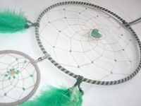 Die edelsten Vertreter unseres Traumfänger-Angebots sind mit Edel- oder Schmucksteinen versehen. Ob als Raumschmuck oder Dreamcatcher - sie stellen in jedem Fall einen Blickfang dar. Die Wirkung kann durch verschiedene Edelsteine ganz gezielt beeinflusst werden. So steht zum Beispiel der Türkis für Heiterkeit und Schutz. Kleine eingewebte Perlen sollen der Legende nach die unerwünschten Träume zum Verweilen und Spielen im Traumfänger anregen. So bleiben sie uns fern und werden morgens von der Sonne verscheucht. Aus Perlen und bunten Federn fertigt jeder ein Exemplar mit persönlicher Note. Als Besonderheit wird er mit Edelsteinen verziert.